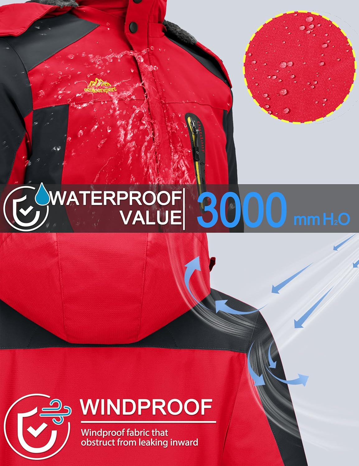 Chaqueta de Esquí Invernal para Hombre TACVASEN a Prueba de Agua, Chaqueta de Nieve con Forro de Forro de Polar, Chaqueta de Snowboard con Capucha
