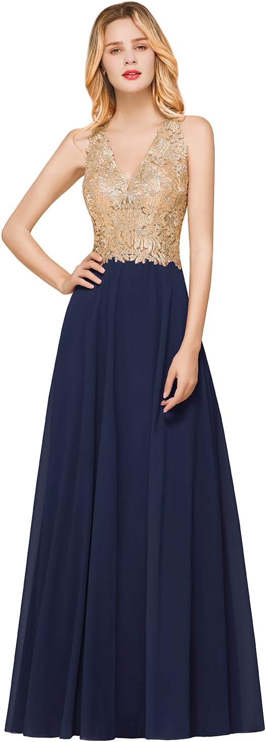 Vestido formal de chifón de encaje Babyonline para mujer, vestidos de dama de honor de encaje dorado con estampado floral