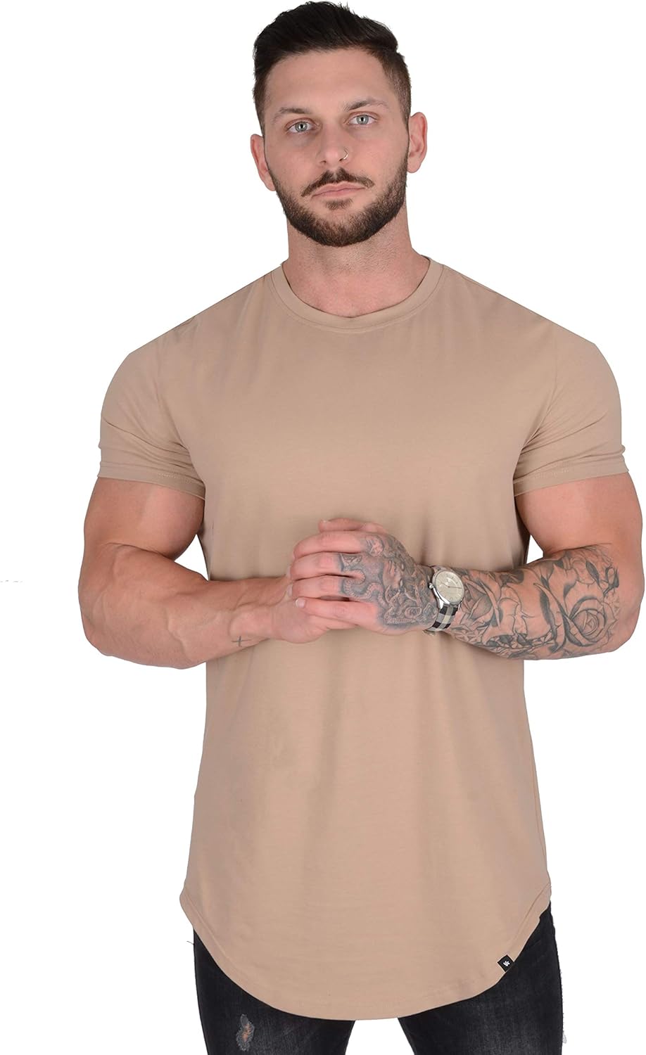 YoungLA Mens Designer Fitted T-Shirts Long Drop Cut Tee Workout Gym 402