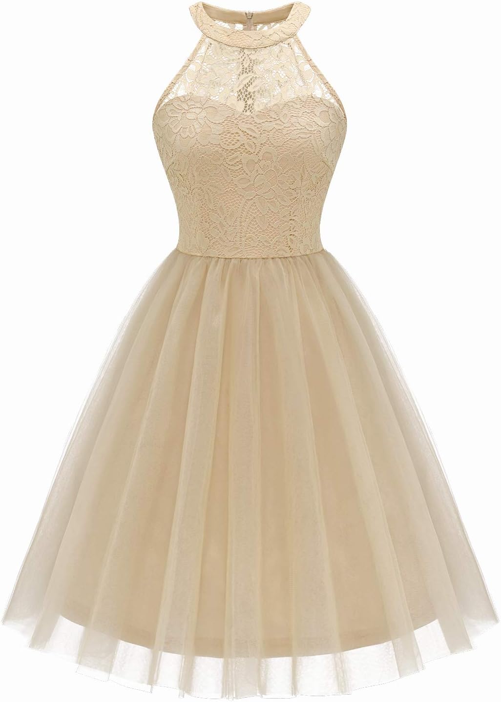 Dressystar Women's Short Halter Cocktail Party Dress Lace Tulle Homecoming Prom Gown