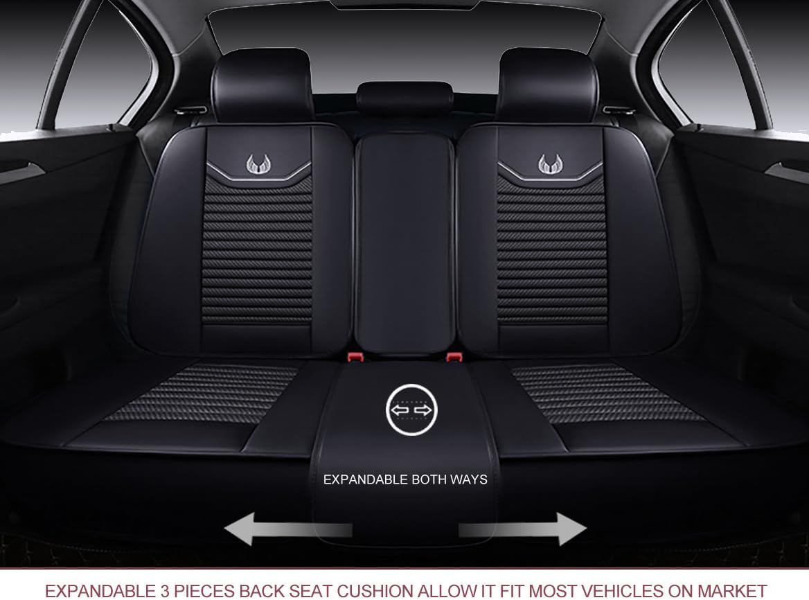 OASIS AUTO Car Seat Covers Premium Waterproof Faux Leather Cushion Universal Accessories Fit SUV Truck Sedan Automotive Vehicle Auto Interior Protector Full Set (OS-008 Black)