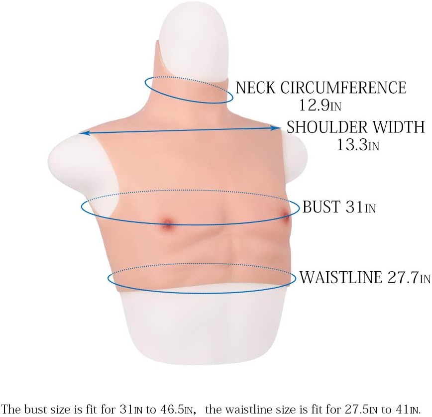 Liifun Fake Silicone Muscle Realistic Male Chest Props Half Body Costume for Cosplay Makeup Halloween Hunk Stronger