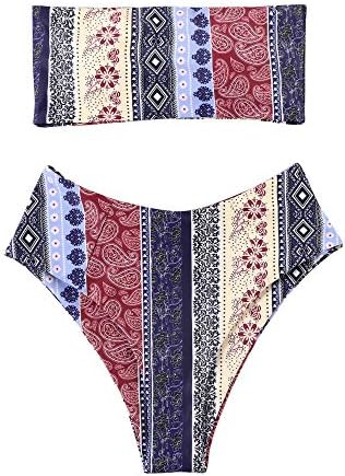 OMKAGI Women Bandeau Bikini Swimsuits Cheeky Off Shoulder Bathing Suit