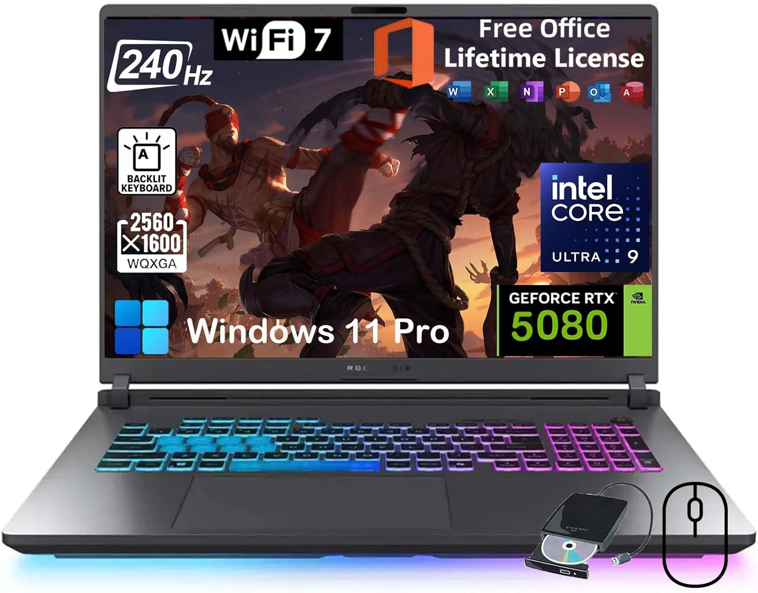 ASUS ROG Strix G18 Gaming Laptop, NVIDIA RTX 5080 GDDR7, Intel 24 Core Ultra 9 275HX, 18" 2.5K 16:10 240Hz Display, w/Office Lifetime & Win 11 Pro, RGB Backlit KB, WiFi 7, 64GB DDR5, 4TB SSD