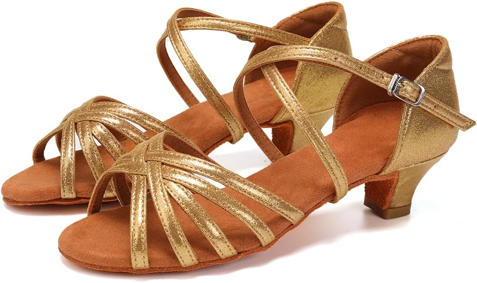 SWDZM Girls Latin Dance Shoes Satin Suede Sole Ballroom Salsa Tango Professional Performance Practice Dance Shoes