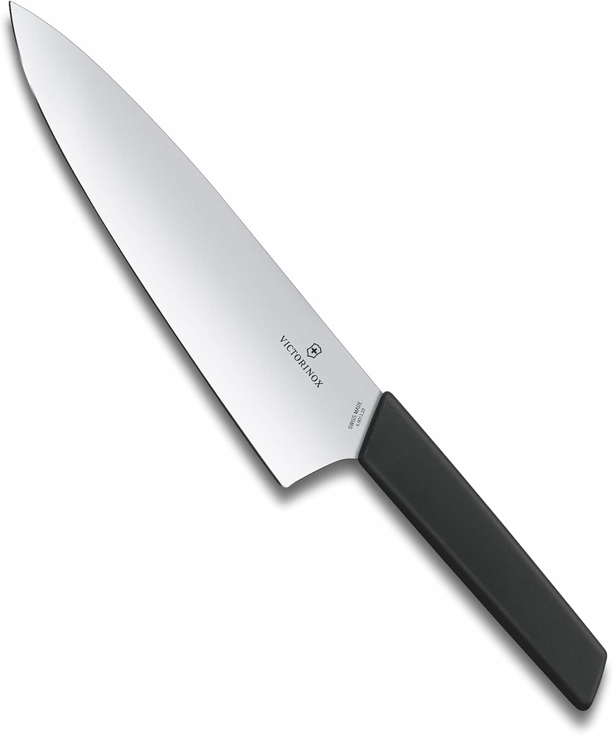Cuchillo de trinchar moderno suizo Victorinox 6.9013.20B para trinchar carne, rebanar y picar carnes, verduras o frutas, hoja recta en negro, 7.9 pulgadas