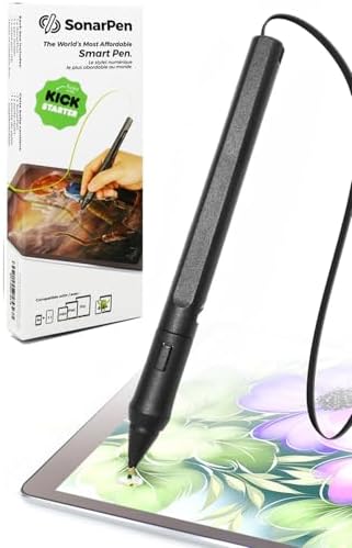 SonarPen: Pressure Sensitive Stylus Pen, with Palm Rejection and Shortcut Button. Battery-Less. Compatible with Apple iPad/iPhone/Android/Switch/Chromebook (Black)