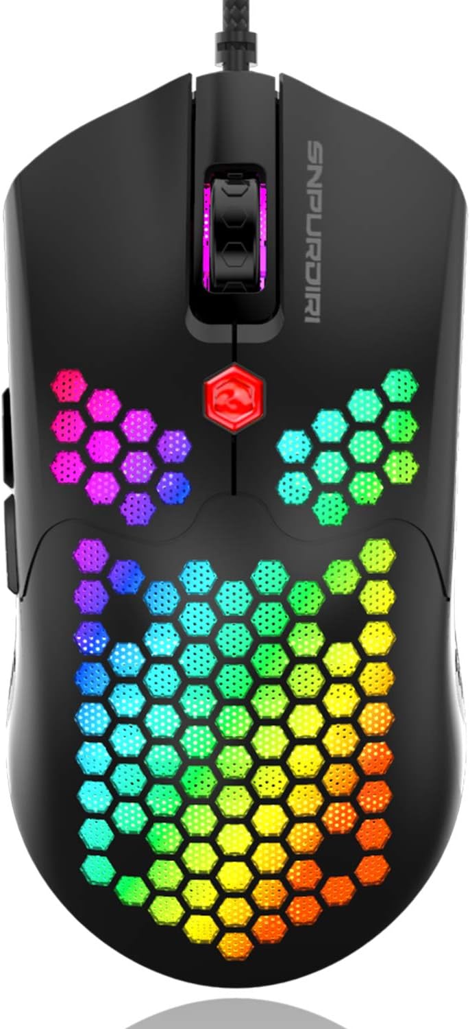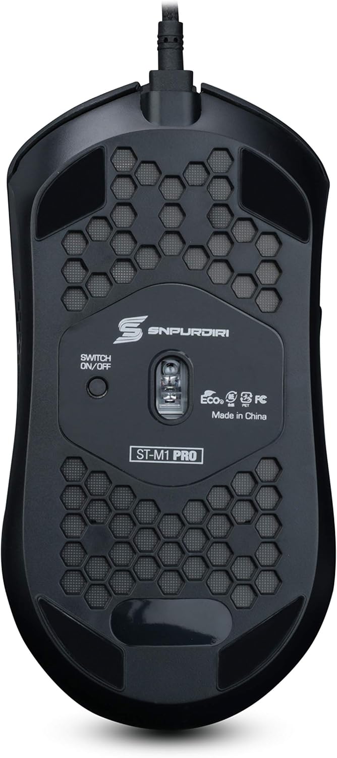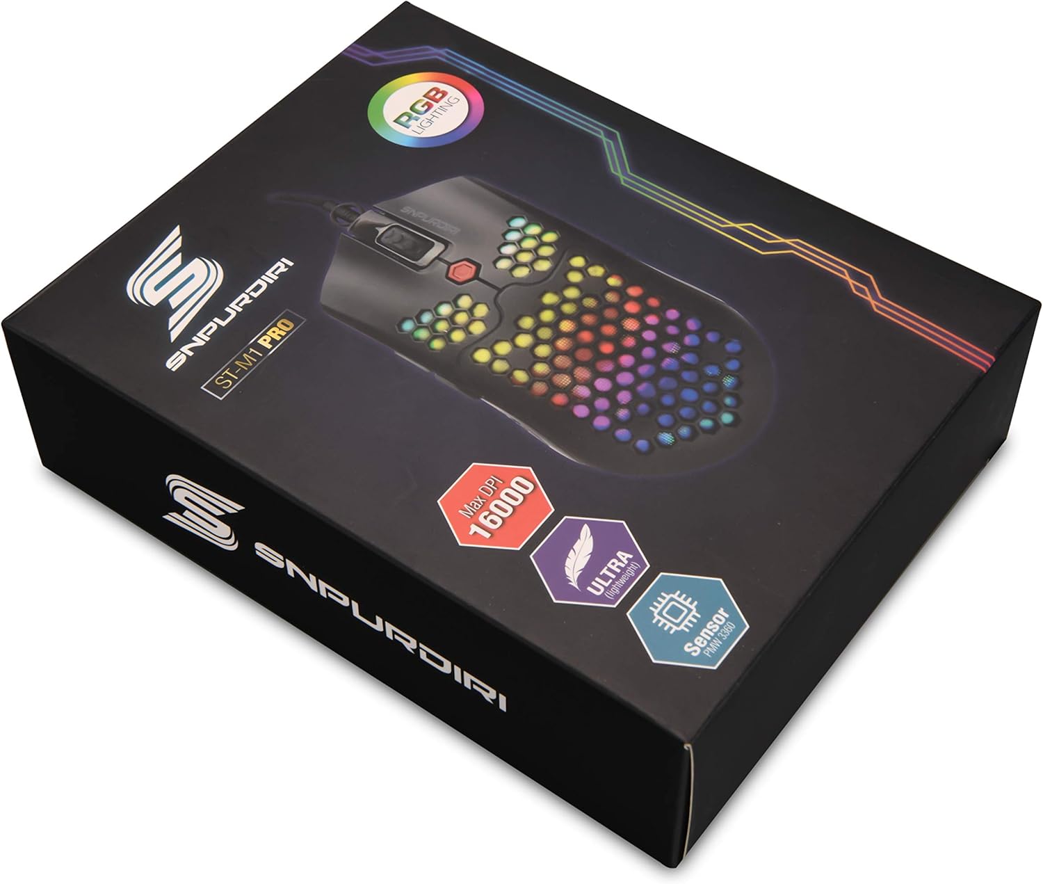 Snpurdiri ST-M1 PRO Ultra Lightweight Honeycomb Shell Wired RGB Gaming Mouse - PMW3360 16000DPI Mice | 7 Buttons Programmable Driver - 65g Only