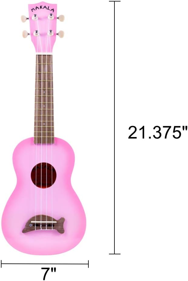 Kala Makala Pink Burst Dolphin Soprano Ukulele - MK-SD/PKBURST Bundle with a Kala Tuner and Polishing Cloth