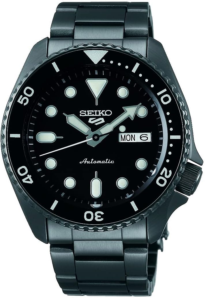 Reloj automático SEIKO para hombres - 5 Sports - Calendario día/fecha, marcadores y manecillas LumiBrite, bisel giratorio, resistente al agua hasta 100m