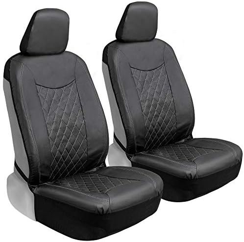 Fundas de asiento de coche de piel sintética cosidas en negro Motor Trend para asientos delanteros — Fundas premium para asientos de coche, hechas para vehículos con reposacabezas desmontables, se adapta a la mayoría de los vehículos
