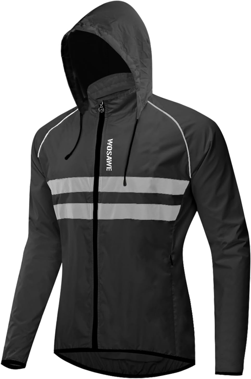 WOSAWE Packable Cycling Jacket Hooded Running Coat Lightweight Biking Windbreaker
