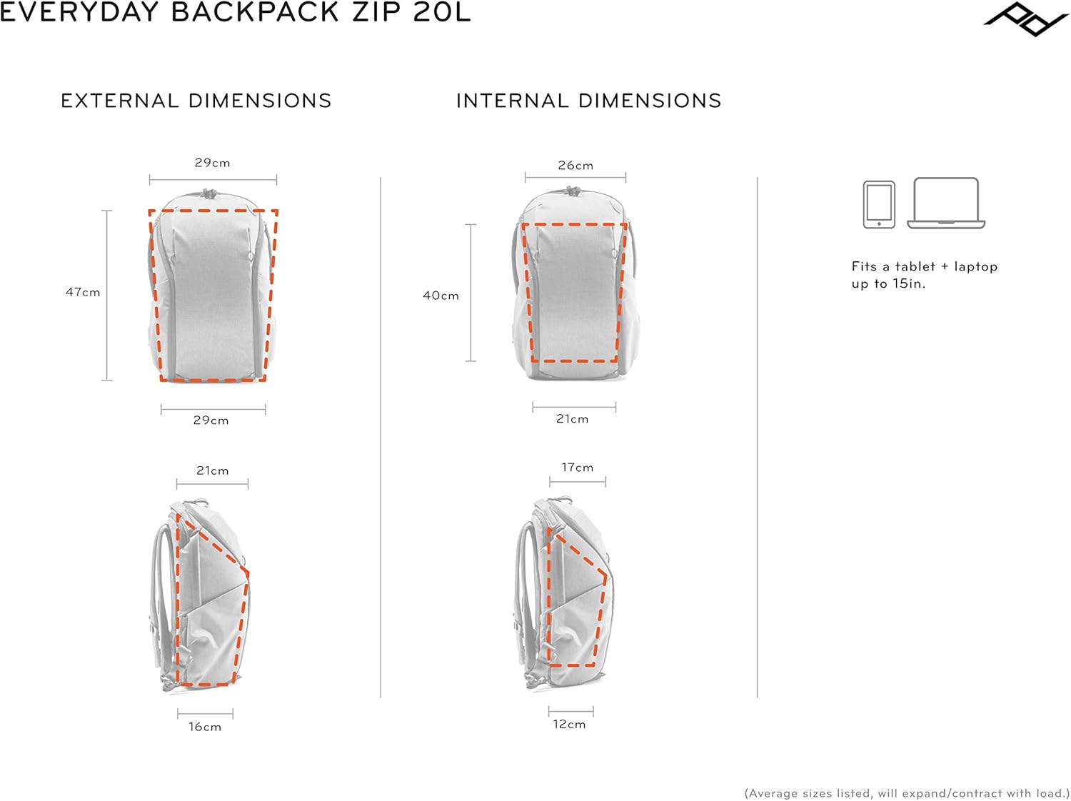 Peak Design Everyday Backpack Zip 20L, Midnight, 270-Degree Zip, Dual Side Pockets, FlexFold Dividers, Fits 15" Laptop, For Camera Carry, Daily Commutes or Travel, Versatile Backpack for Men and Women