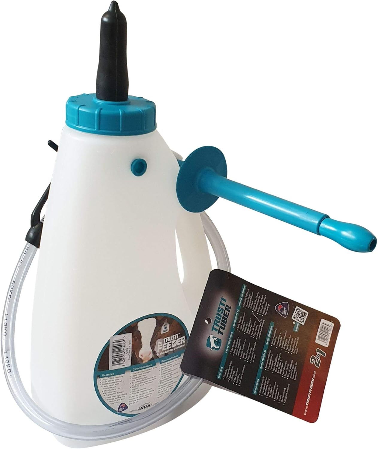 TRUSTI Tuber 2-in 1 Pack by Antahi - Premium Calf Feeder with Flexible Tube, Teat and **New Shape** 1 Gallon Bottle - Gentle, Safe, and Easy to Use Calf Esophageal Fluid Feeder Probe - Vet Designed