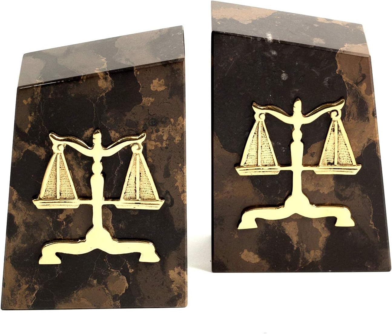 These heavy "Tiger Eye" marble Legal bookends will give a stylish and modern look to any bookshelf or desk. Each unique bookend is beautifully hand carved from solid marble stone and polished for a high gloss finish. They are cut in a wedge shape with veining and decorated with gold plated brass Scales of Justice emblem. These simple yet large elegant office bookends offer a full size wedge design for supporting heavy books, make decorative marble office bookends, a unique marble gift for an executive, graduation gift, and impressive gift for any special occasion. Whether you are looking for a unique personal gift or gift for the office, these marble bookends would be the perfect choice.