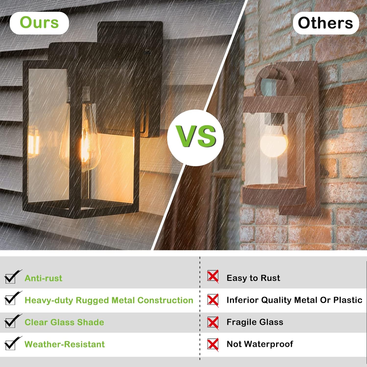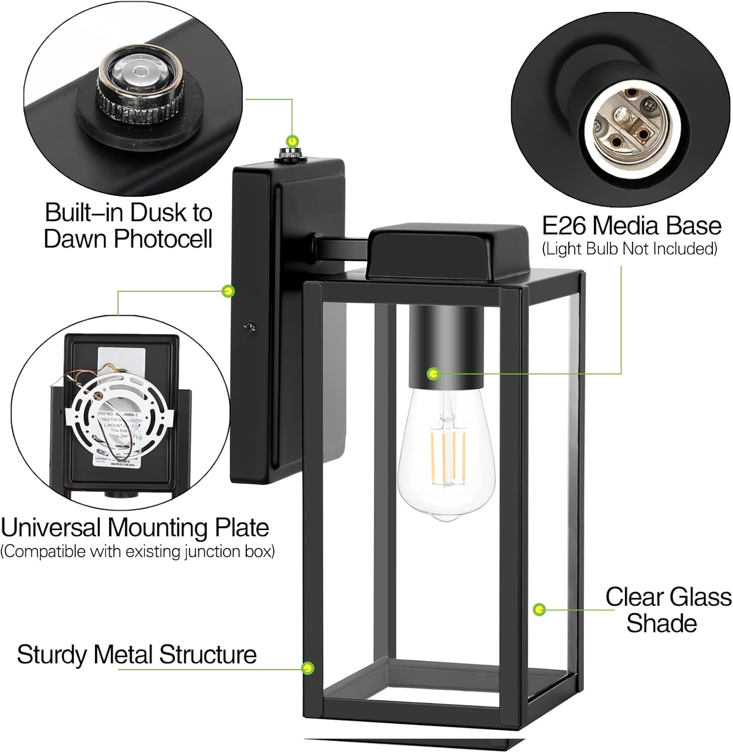 【Opened bottom design】 These outdoor wall lights are designed with opened bottom, convenient for replacing bulb, just screw a E26 bulb you desired into the exterior sconce.