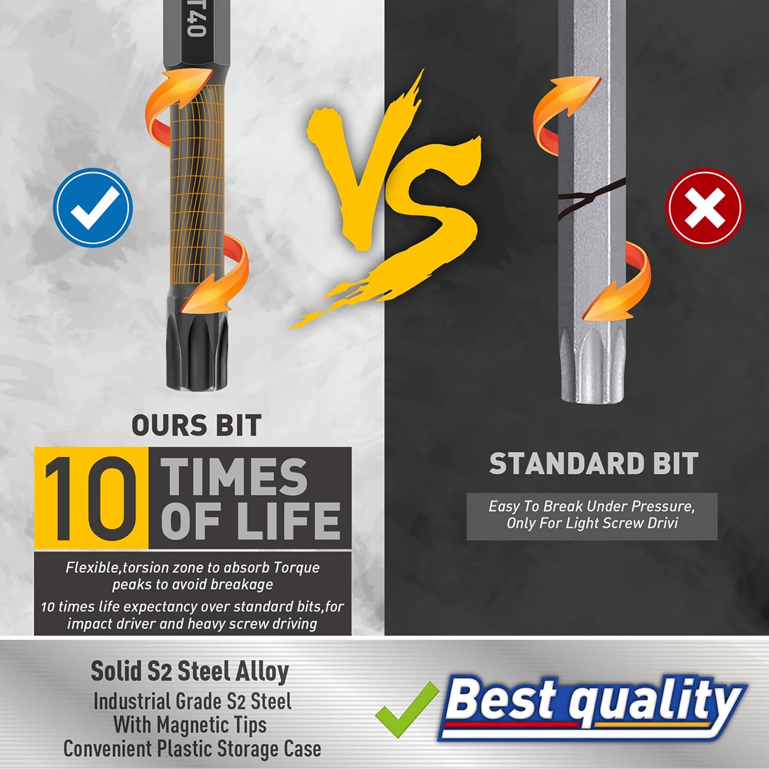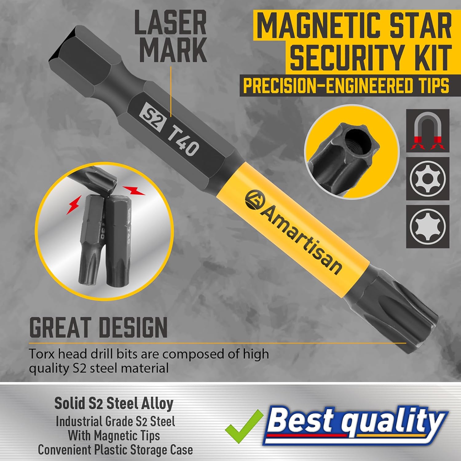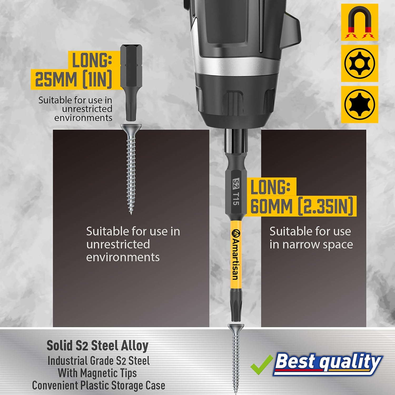 Amartisan Torx Bit Set, 24-Piece S2 Steel, 1" & 2.3" Long T5 - T40, Security, Tamper Resistant Fastener Drive Bit