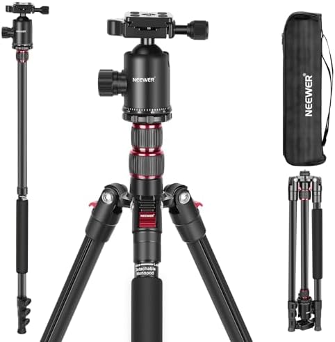NEEWER 77 inch Camera Tripod Monopod for DSLR, Phone with 360° Panoramic Ball Head, 2 Axis Center Column, Arca Type QR Plate, Compact Aluminum Lightweight Travel Tripod 34lb Max Load, Bag Included