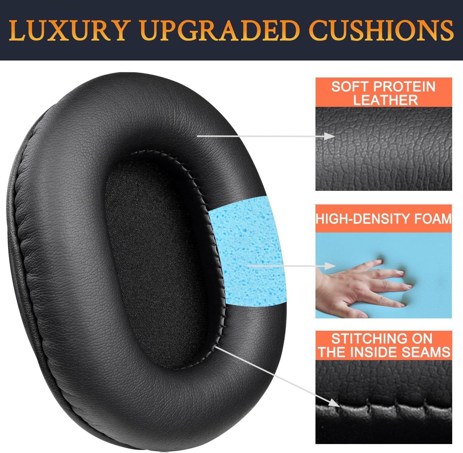 Reemplazo de almohadillas SOULWIT para Audio Technica ATH M50X M50XBT M50RD M40X M30X M20X MSR7 SX1 Auriculares de Monitor, almohadillas suaves de cuero de proteína, espuma de alta densidad - Negro