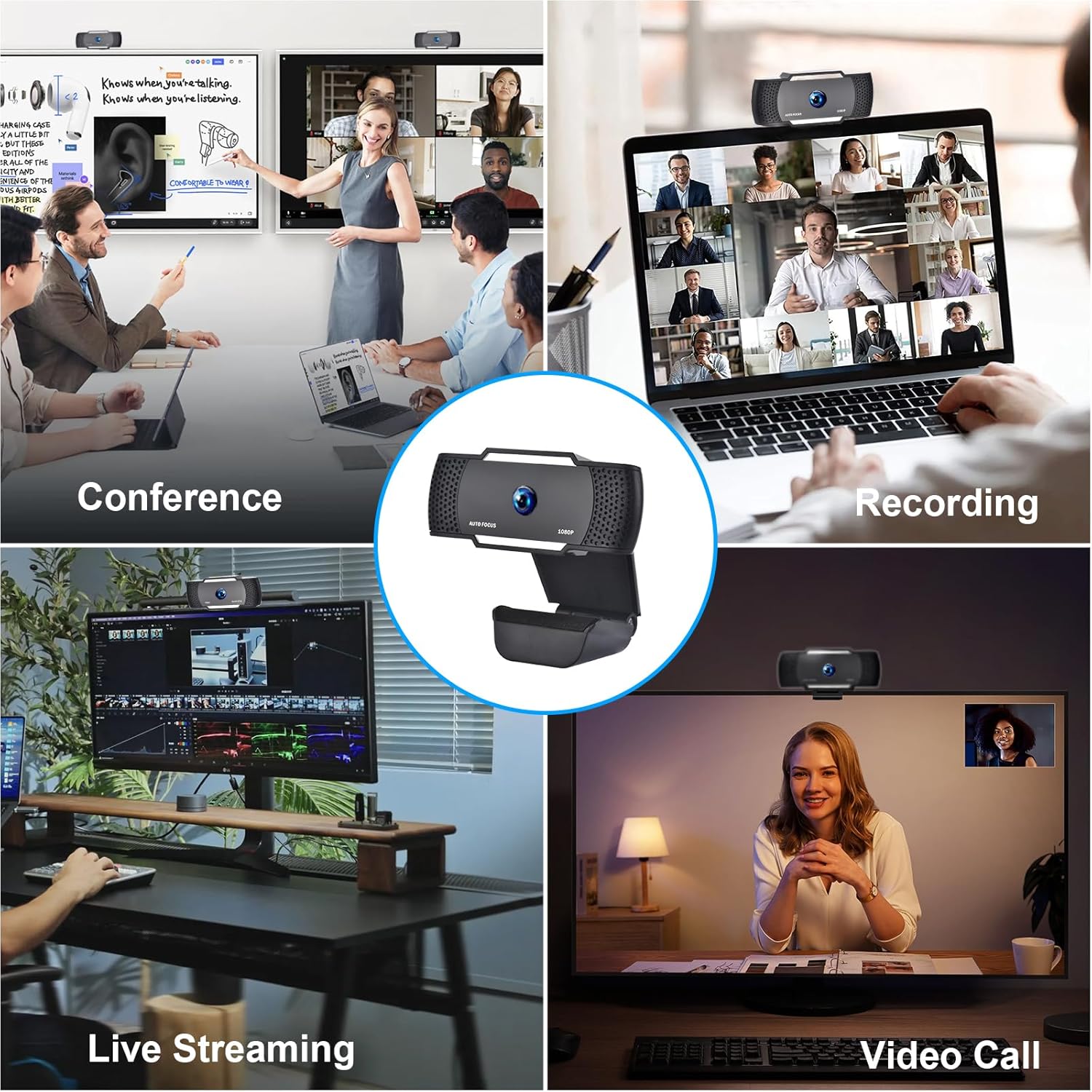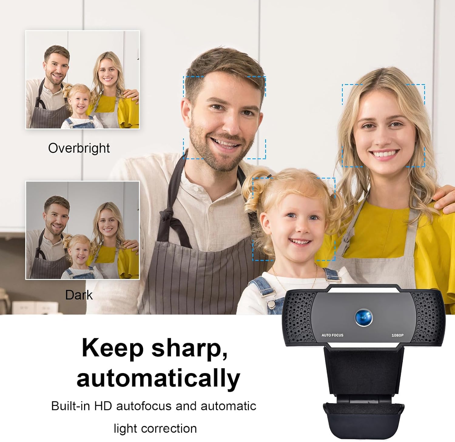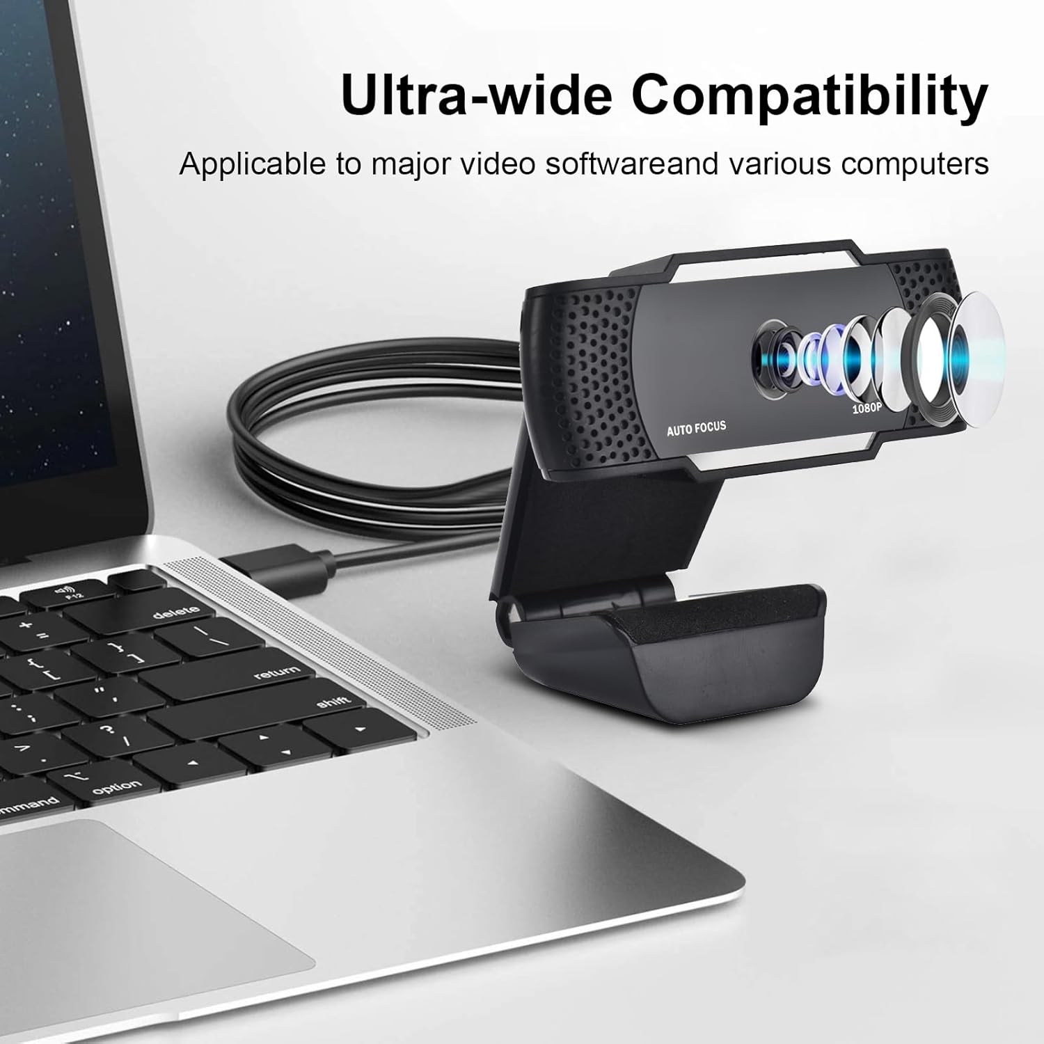 Cámara Web Full HD 1080p con Autoenfoque: Experimente una calidad de video superior con nuestra cámara web 1080p, que cuenta con un sensor CMOS de dos MP que ofrece una claridad impresionante a 30fps. A diferencia de las cámaras de enfoque fijo, esta cámara web externa para laptop se ajusta automáticamente para garantizar que sus imágenes permanezcan nítidas y cristalinas, haciéndola ideal para videollamadas y streaming.