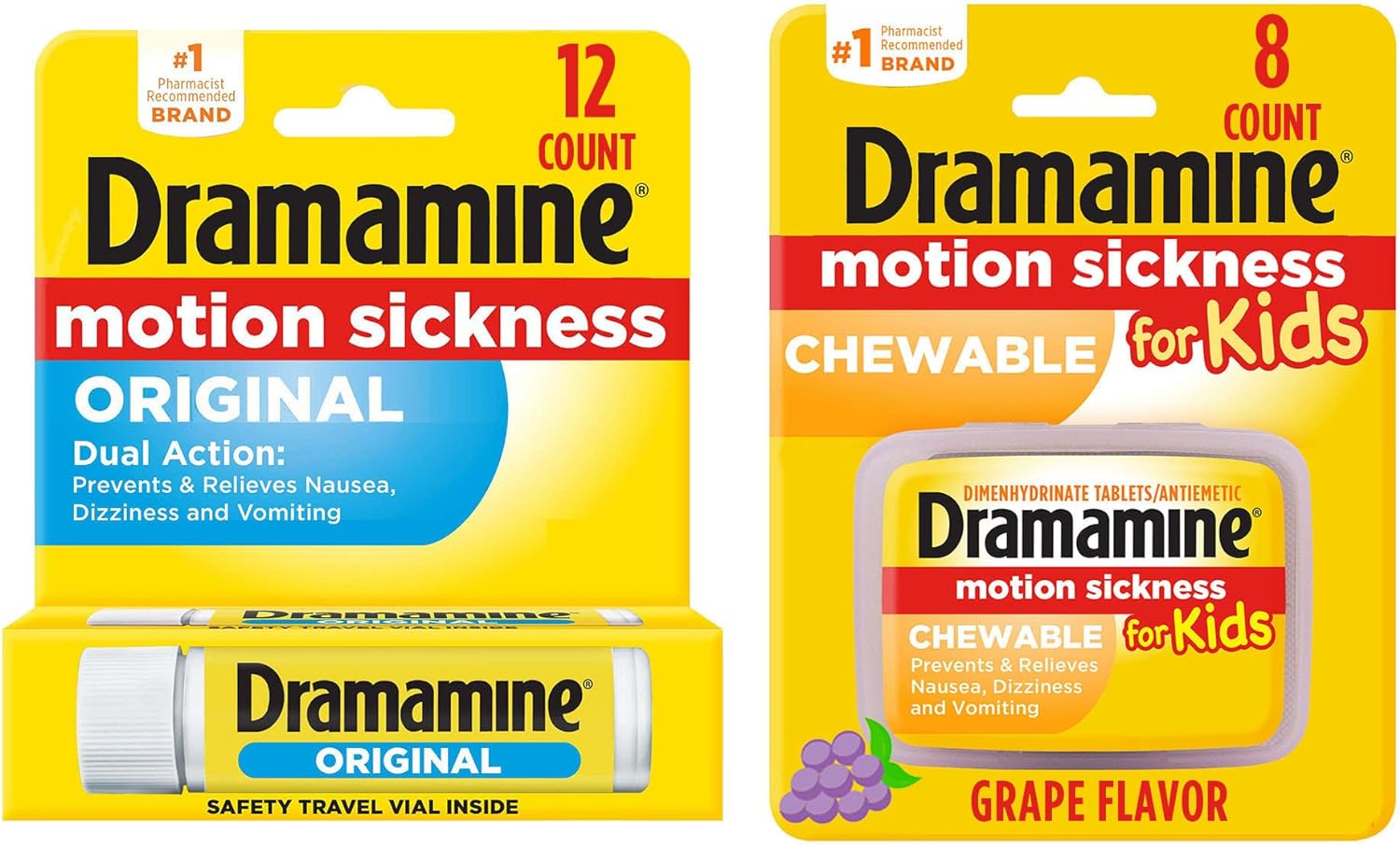 Dramamine Motion Sickness Family Pack | kid's Chewable Tablets & Original Formula