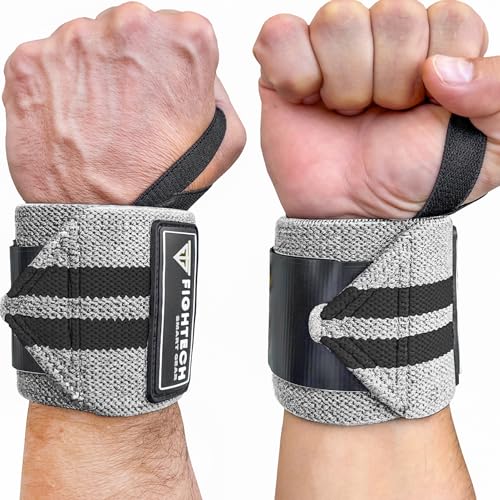 FIGHTECH Wrist Wraps for WeightLifting | 18 inch Professional Grade Lifting Wrist Wraps | Best for Powerlifting Competition, Strength Training, Bodybuilding (Gray, 18 Inch)