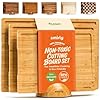 Eco-Friendly y Resistente - Elige un juego de tablas de corte ecológico que resiste la flexión, deformación, olores y manchas. Nuestras tablas de bambú no porosas están construidas para durar y son fáciles de usar.