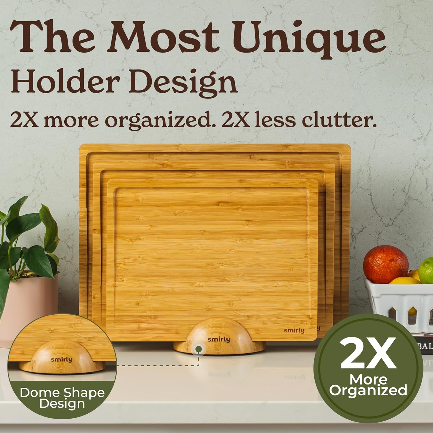 3-Pack con Soporte para Organizar con Comodidad - Mantén tu cocina ordenada con nuestro juego de 3 tablas de corte que incluye un soporte conveniente. Este juego no solo proporciona tres tablas de bambú versátiles, sino también un soporte elegante para mantenerlas organizadas y accesibles.
