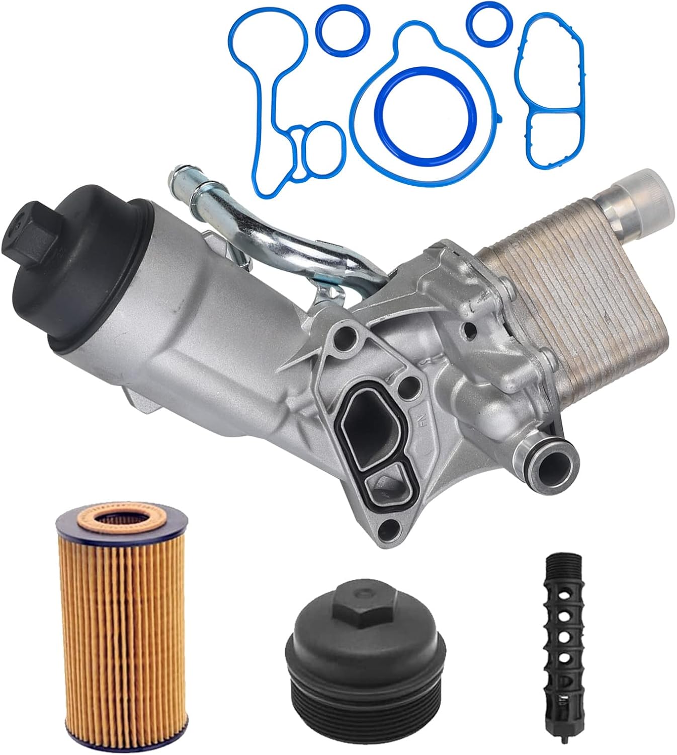 100% Nuevo conjunto de carcasa de enfriador de aceite de motor, incluye filtro y tapa, con nuevas juntas de sello ACM, calidad superior y MEJOR que el material común.