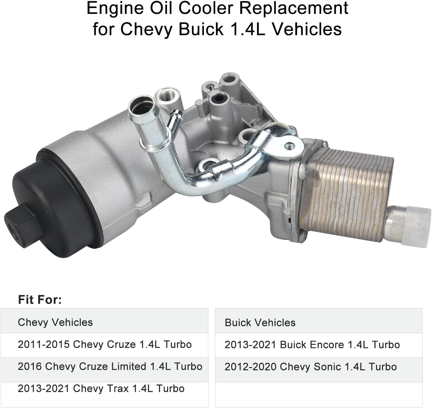 Reemplazo directo de enfriador de aceite de motor compatible con Chevrolet Cruze 1.4T, Buick Encore 1.4L 2013-2020, Chevy Cruze 1.4L 2011-2015, Chevy Cruze Limited 1.4L 2016, Chevy Sonic 1.4L 2012-2020, Chevy Trax 1.4L 2015-2020.