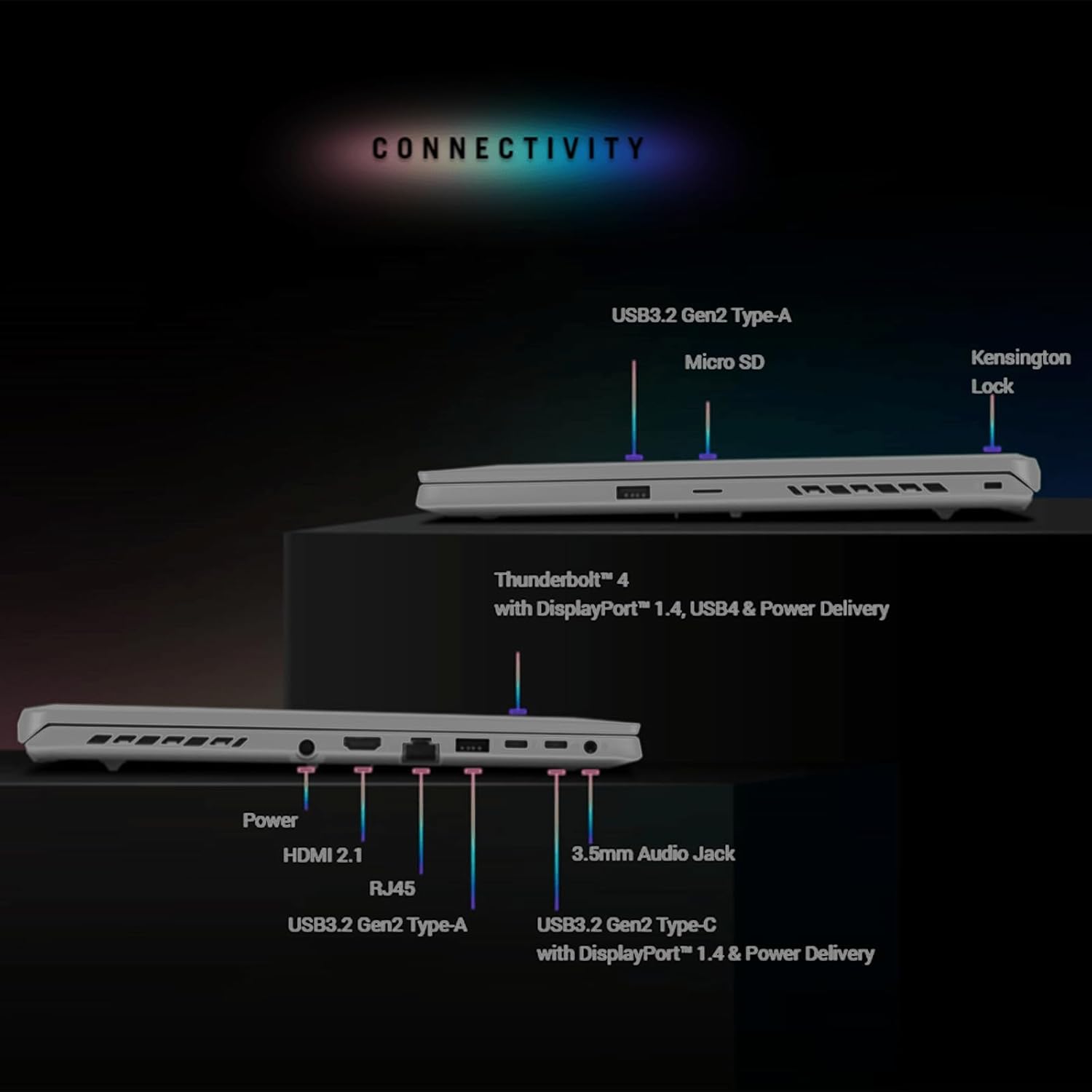 【NVIDIA GeForce RTX 4060】 The laptop includes a dedicated NVIDIA GeForce RTX 4060 graphics, 8GB GDDR6 with ROG Boost at 100W (120W with Dynamic Boost 2.0) for an ultrafast GPU to fuel your games, offering exceptional gaming performance, ray tracing support, and realistic visuals.