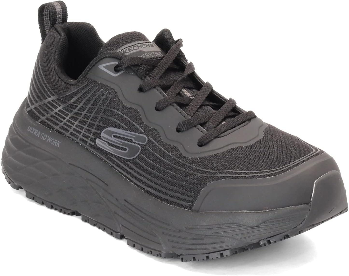 Maximum comfort and safety all long day promises the Skechers Work Relaxed Fit®: Max Cushioning Elite SR - Rytas shoe. The non-slip lace-up work trainer has a mesh and synthetic upper, an Air-Cooled Memory Foam® insole and a Max Cushioning™ midsole. Professional shoe standard: EN ISO 20347:2012 category: OB FO SRC