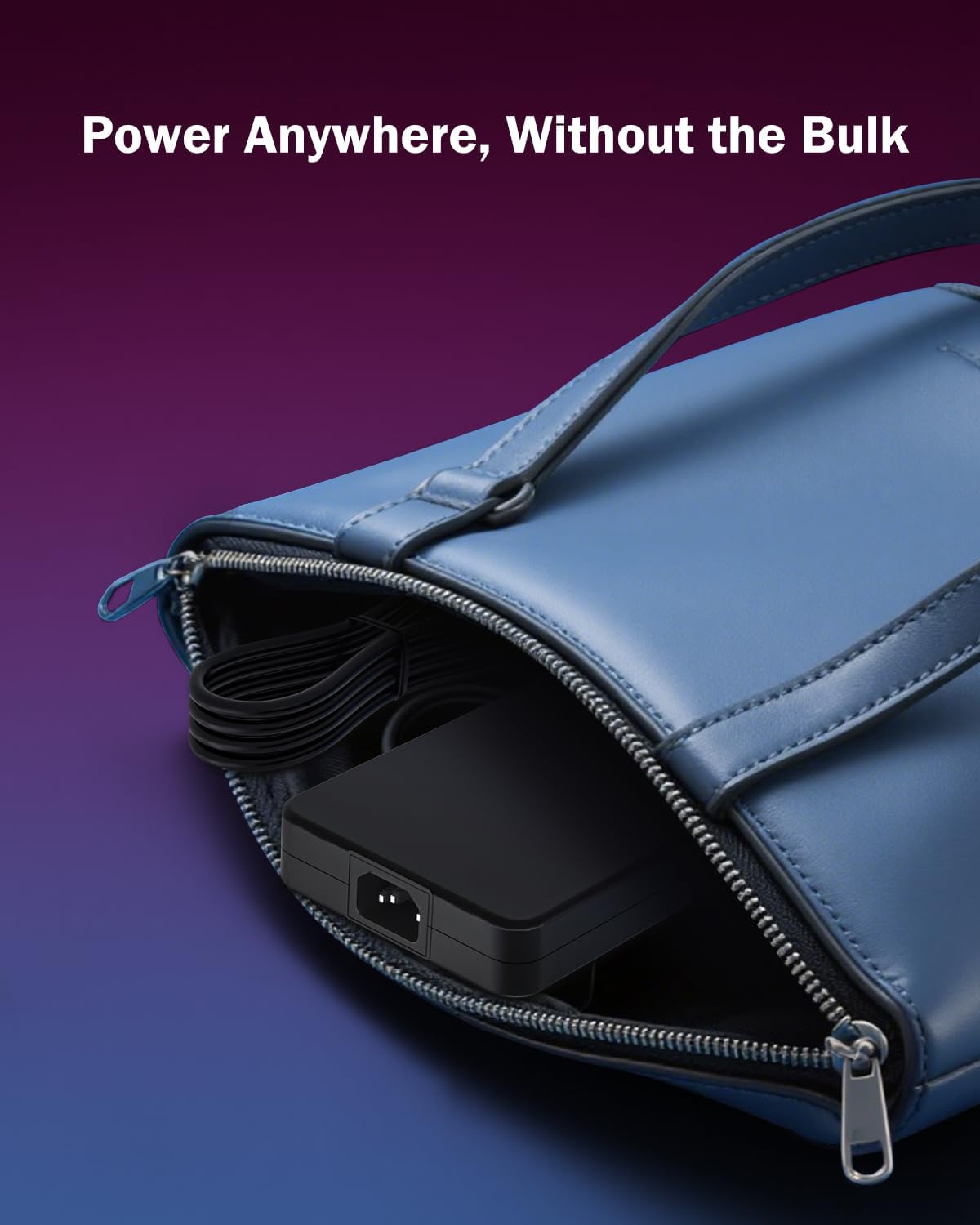 Diseño Ligero con Cable de 10 pies --- Diseño más delgado y cable de 10 pies de longitud, ofrece gran comodidad para cargar portátiles de alta potencia sobre largas distancias, perfecto para uso en casa, oficina o viajes.