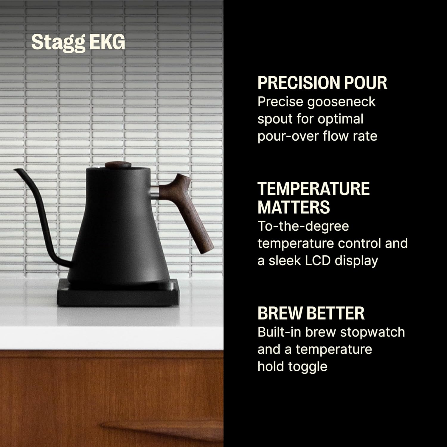 Fellow Stagg EKG Electric Gooseneck Kettle - Pour-Over Coffee and Tea Kettle - Stainless Steel Water Boiler - Quick Heating for Boiling Water - Matte Black With Walnut Handle