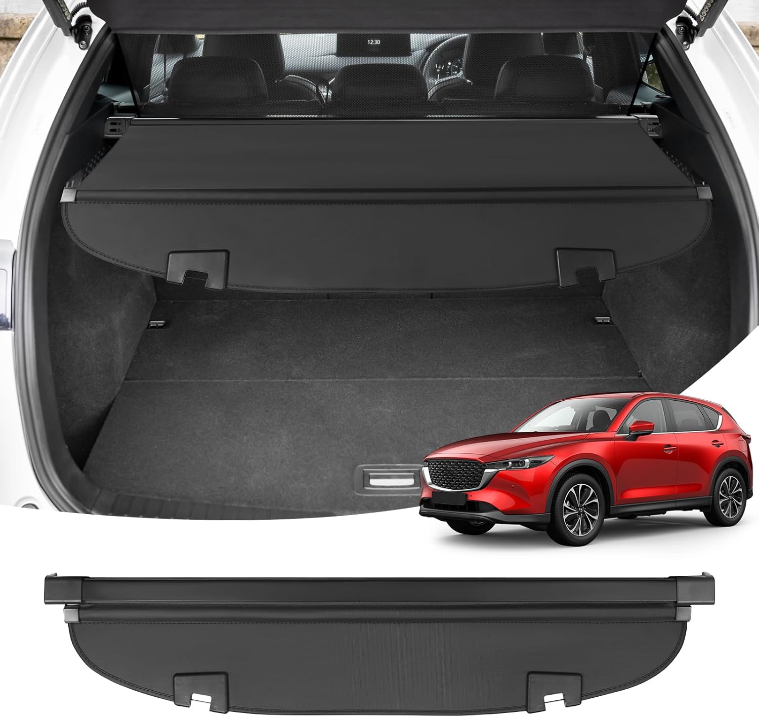 Ajuste Perfecto: Esta cubierta de carga está diseñada especialmente para Mazda CX-5 CX5 2017 2018 2019 2020 2021 2022 2023 2024 2025. Nuestra cubierta de maletero está diseñada según el radio original del vehículo, la cubierta de carga trasera se ajusta perfectamente al espacio del maletero del coche.