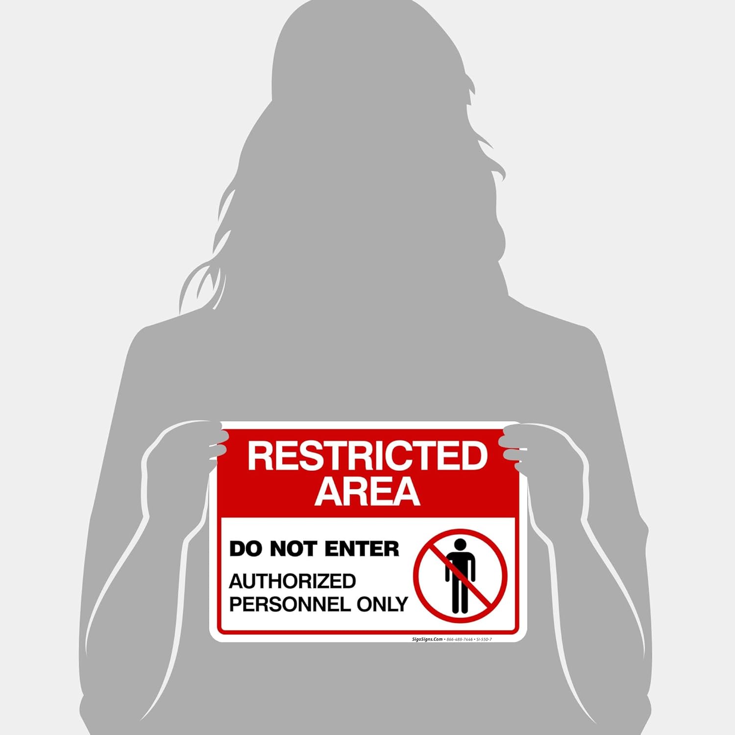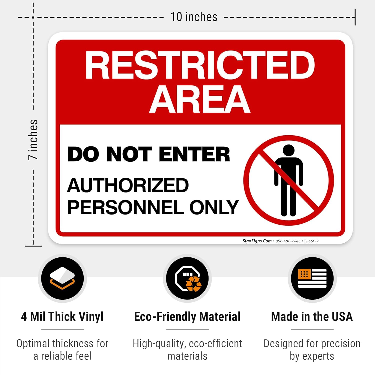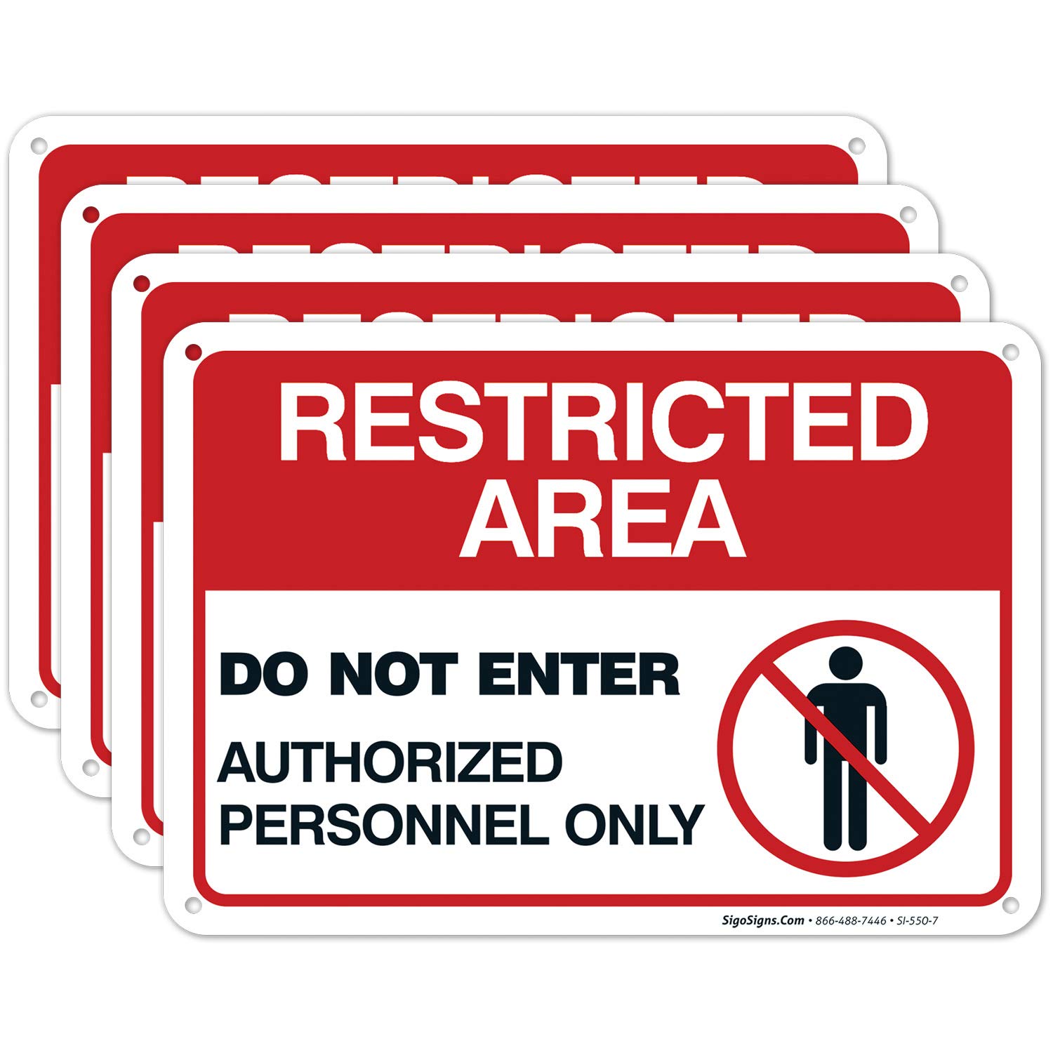 Restricted Area Do not Enter Authorized Personnel Only Graphic Sign, (4 Pack) 10x7 Inches, Rust Free .040 Aluminum, Fade Resistant, Made in USA by Sigo Signs