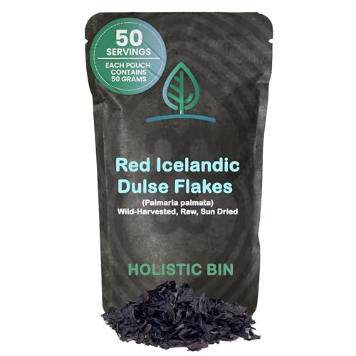 Wild Icelandic Dulse Flakes by Holistic Bin | Fine Culinary Grade Organic Seaweed Superfood | 100% Pure Atlantic Dulse Seaweed for Soups, Smoothies, and Seasoning | Rich in Iodine & Minerals