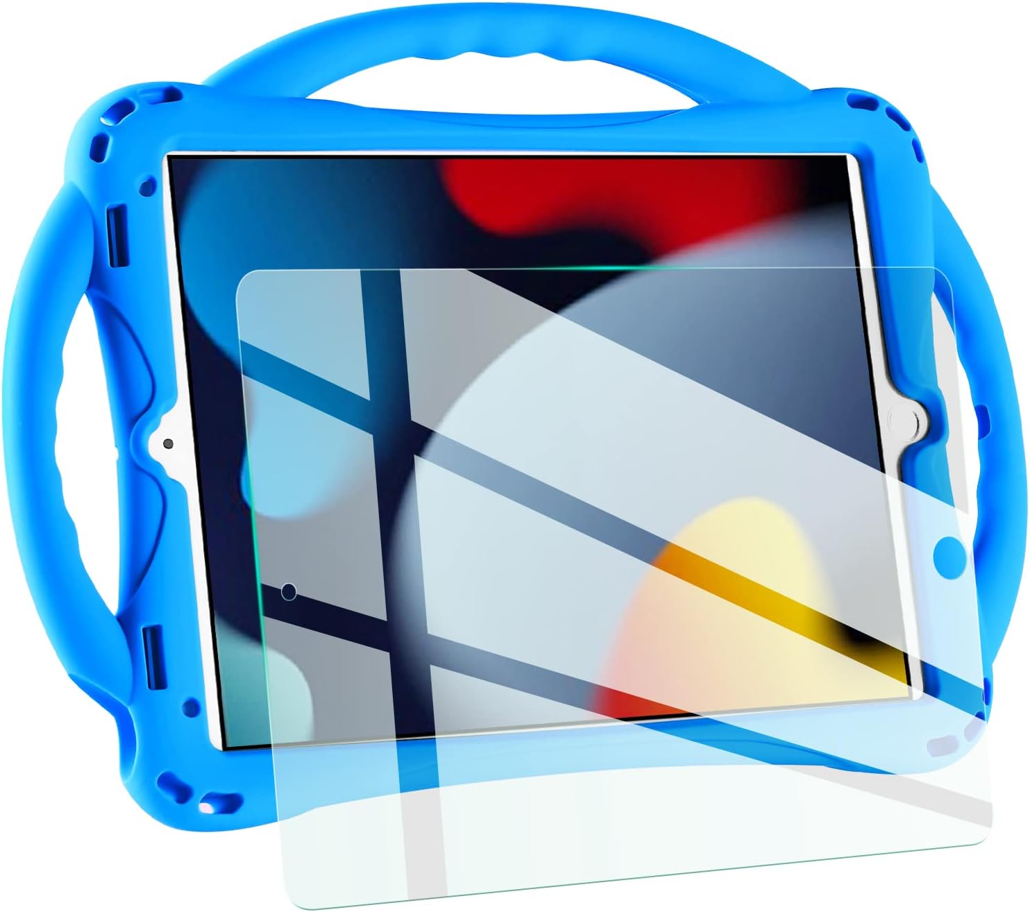 Funda TopEsct para niños para iPad de 10.2 pulgadas - Funda de silicona a prueba de golpes con protector de pantalla de vidrio templado y correa - Compatible con iPad 9ª/8ª/7ª generación (2021) (Azul)