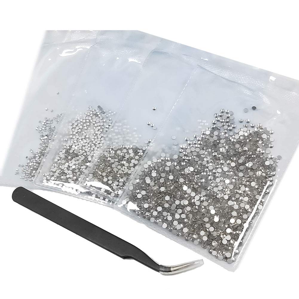 Each size approx.1440pcs, total 4 packs of nail crystals, high quality rhinestones for nails design, made from high pure quality glass and genuine silver plating back, which is the top grade glass material among all rhinestones, with long lasting sparkling, and the vacuum plating makes the flat back of rhinestones super durable.