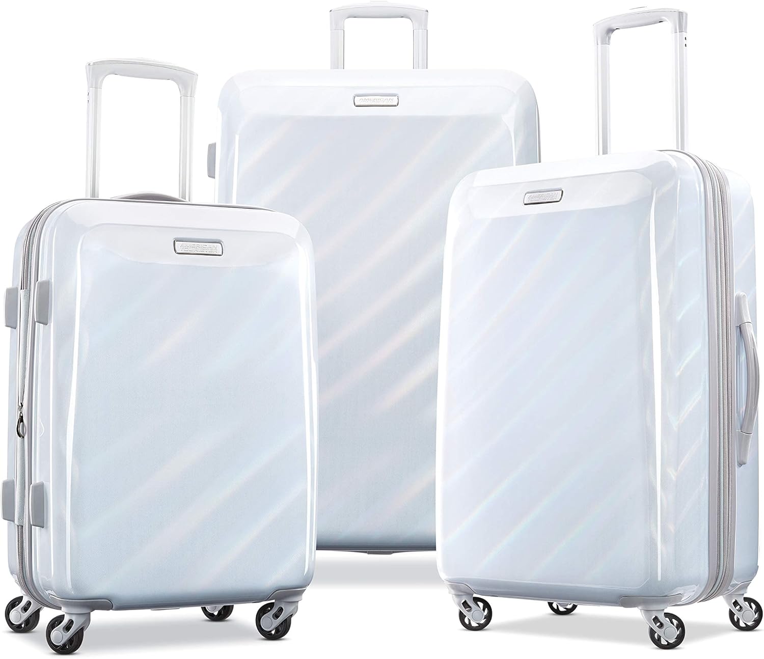 American Tourister Moonlight Hardside Expandable Luggage with Spinner Wheels, Iridescent White, 3-Piece Set (21/24/28)