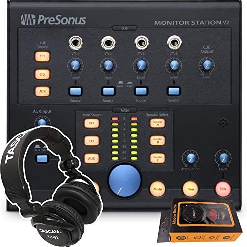 PreSonus Monitor Station V2 Controller with Input and Output Routing 4 Headphone Outs with Individual Levels and Pro DJ Headphone and Extra Bundle