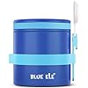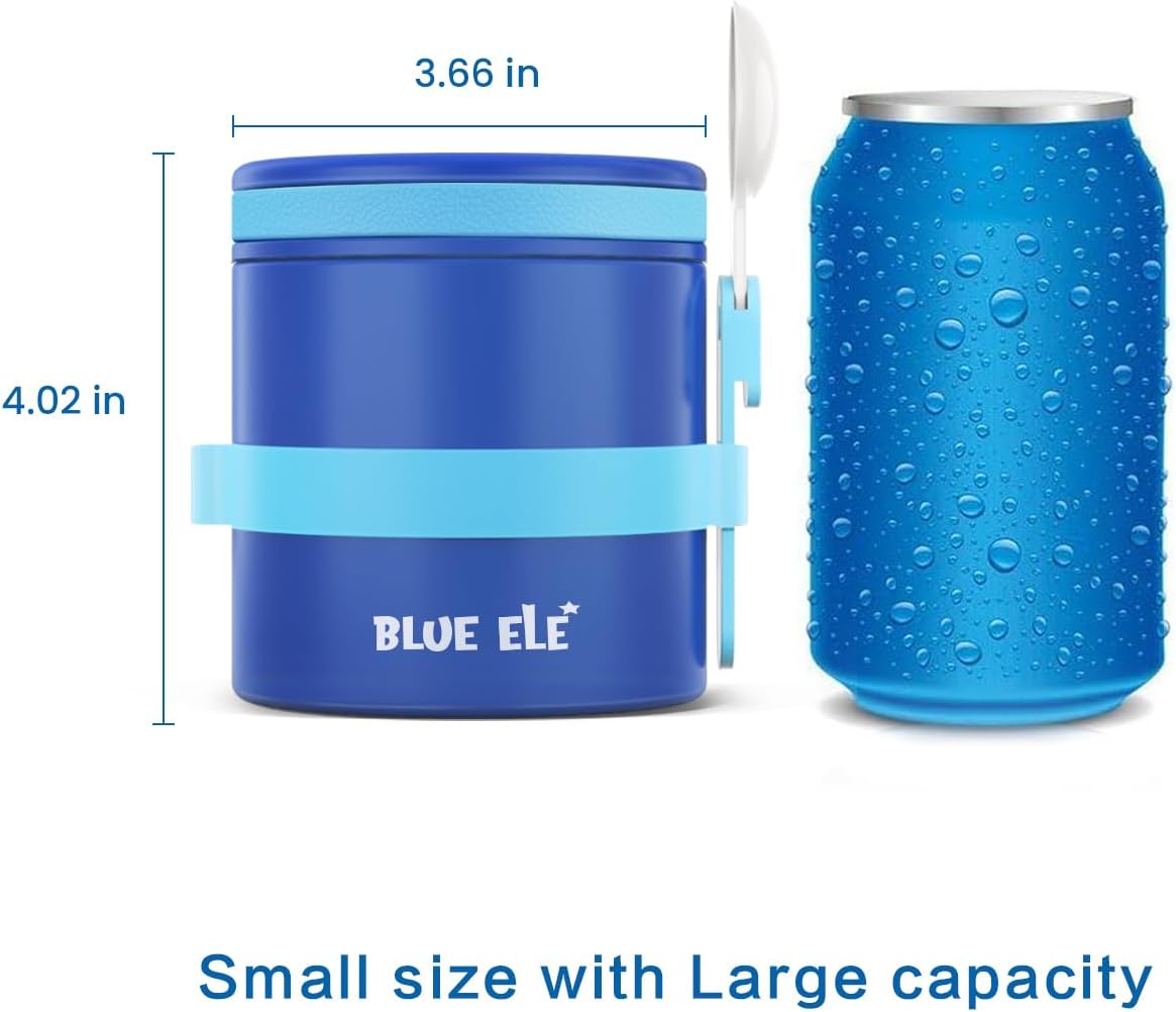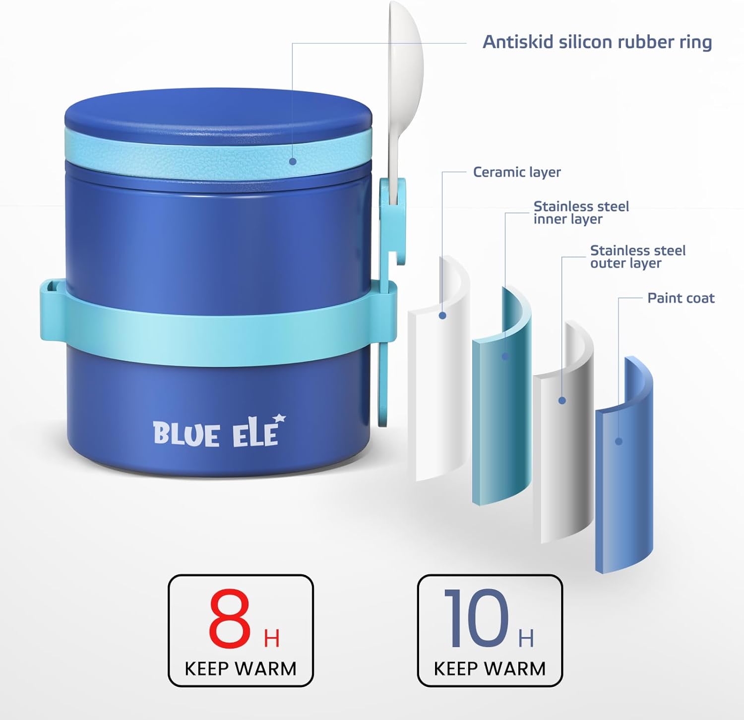 BLUE ELE Vacuum Insulated Thermos Food Jar for Hot Food, 13.5oz, Leak-Proof, Ceramic-Coated Stainless Steel Lunch Container with Folding Spoon, Easy Grip Lid, Deep Blue