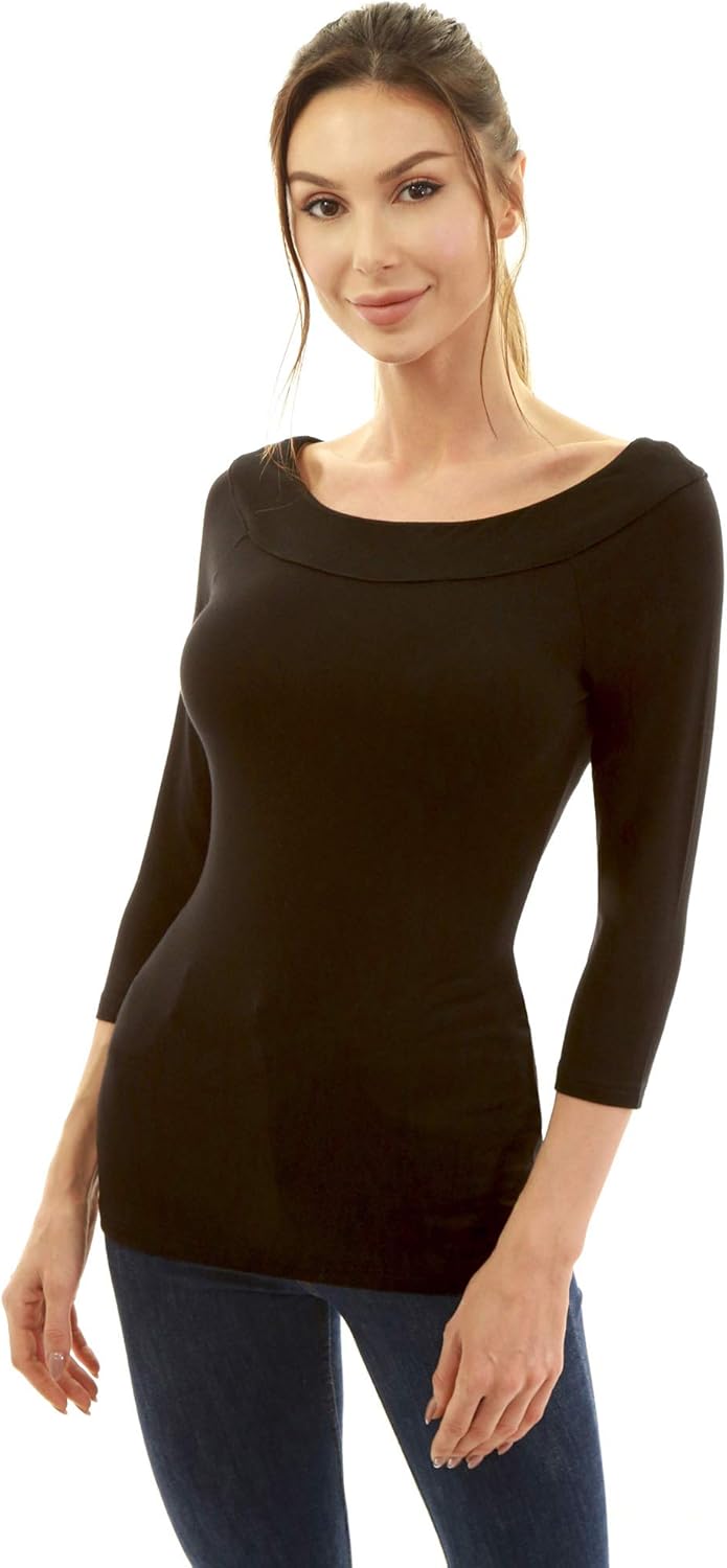 AmélieBoutik Women Boat Neck Raglan 3/4 Sleeve Blouse