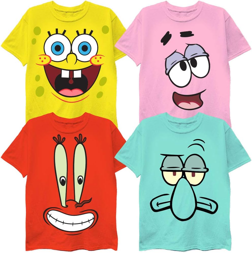 Camiseta de Niños de Bob Esponja Cuadrado 4-Pack Bundle - Bob Esponja, Patricio, Calamardo y Sr. Cangrejo - Nickelodeon - Tallas para Niños 4-16