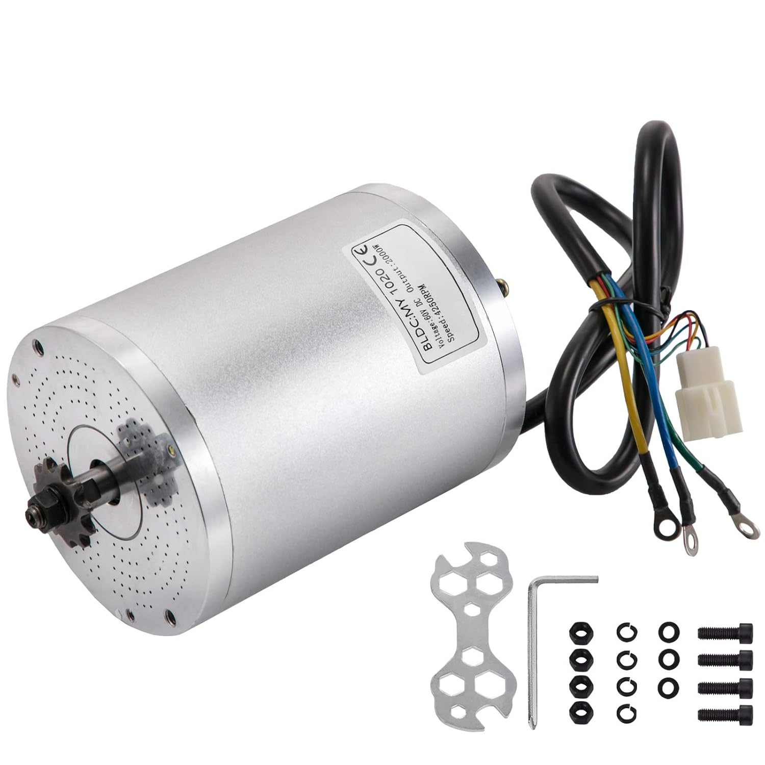 Electric Brushless Motor 60V DC 2000W Electric Bike Motor 4250 RPMOur Brand New electronic brushless motor comes with a lightweight body yet considerable & stable power output, offering excellent efficiency, controllability, and longevity. It is quite suitable for golf carts and mobility carts,electric car, electric motorcycle,etc.High-Powered Motor Strong Motivation Positive & Negative Rotation Free Wrenches & Screw Set key Features2000W Brushless MotorPowerful and Ultra-efficient with an output of 2000W yet brushless motors without noise and weight of brushed motors.Pure Copper CoilsThe High conductivity of copper means that components can be made smaller and kept closer together, offering more stability. 4250 PRM High SpeedStrong Motivation, reaching a high speed of 4250 RPM?sturdy and durable.Dual-Direction DesignBeing capable of rotation in either the clockwise or counterclockwise direction by reversing the scooter motor's power wires.Free Wrenches & Screw SetTwo wrenches and one screw set FREE for your easy operation and replacement.Wide ApplicationSuitable for Electric car, electric motorcycle, electric tricycle, electric golf carts, forklift, electric boat, etc.SpecificationType: Brushless DC Motor Shell Material:Aluminum Voltage: 60V DC Output: 2000 W Rated Current: 42 A Speed: 4250 RPM Sprocket Wheel: TF8 Motor Size: 9 inches x 6 inches x 7 inches Package Content1 x 48V Brushless Motor 1 x L-Shaped Wrench 1 x Multi-purpose Wrench 1 x Screw Set
