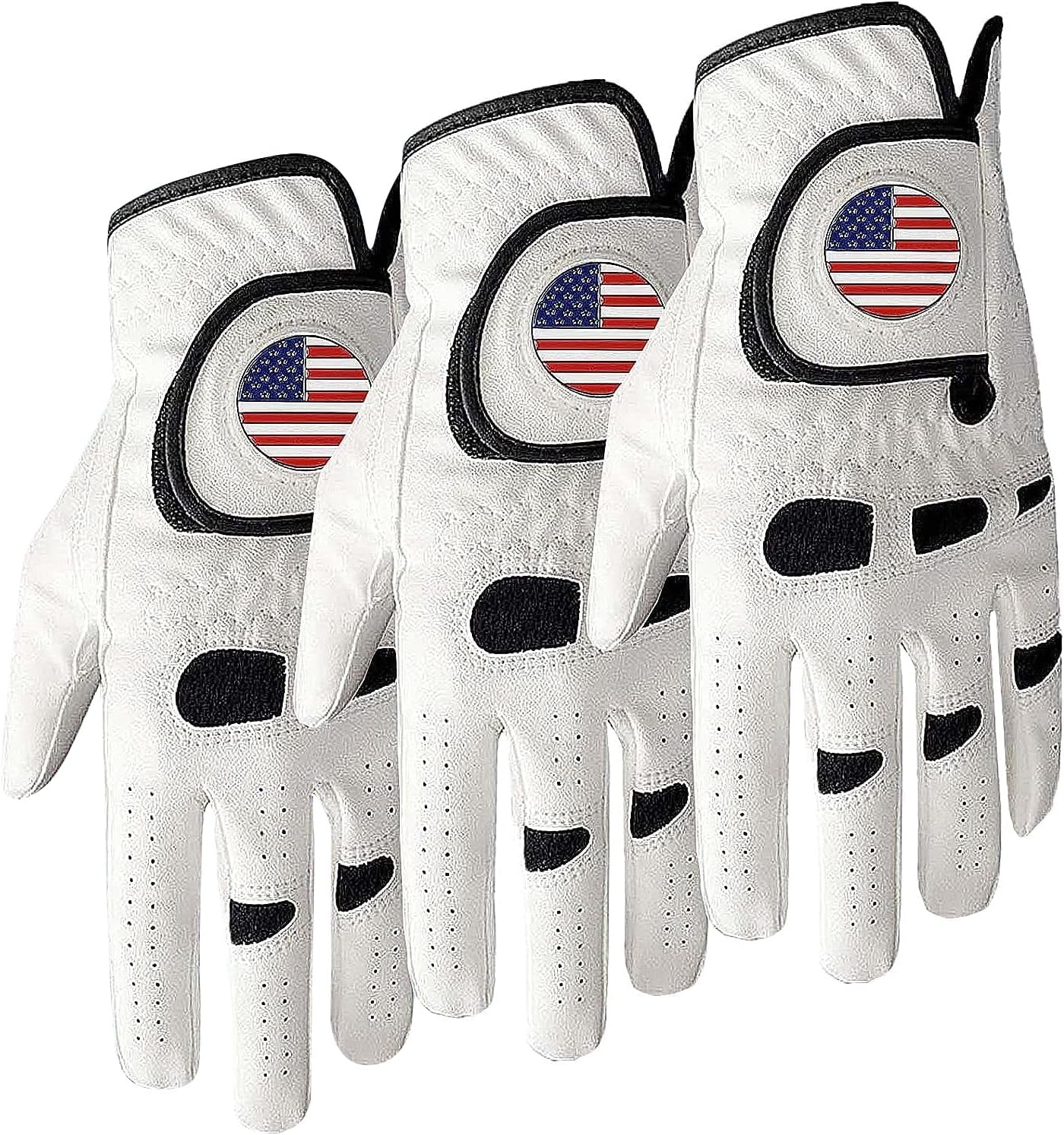 Amy Sport Golf Gloves Men Left Hand Right Handed Golfer 3 Pack with Ball Marker Soft Leather Weathersof Grip Mens Glove Size S M ML L XL XXL 3XL