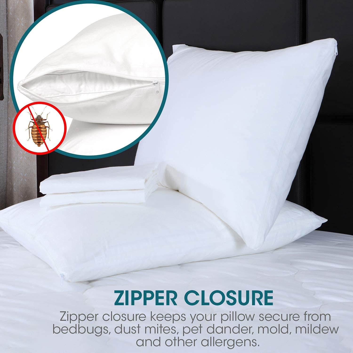 ZIPPERED PILLOW PROTECTOR: Micropuff pillow cases use a plastic nylon coil zipper to ensure durability and that the zipper lock doesn't easily break, snap, or jam like other pillow protectors do, which are made of metal.