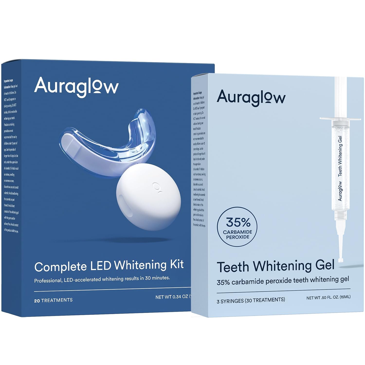 Auraglow Teeth Whitening Kit & 35% Teeth Whitening Gel Refill Pack