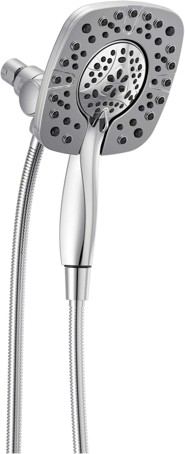 Delta 4-Setting In2ition 2-in-1 Dual Shower Head with HandHeld Spray, Chrome Detachable Shower Head with Hose, Showerhead, 1.75 GPM Flow Rate, Chrome 58498