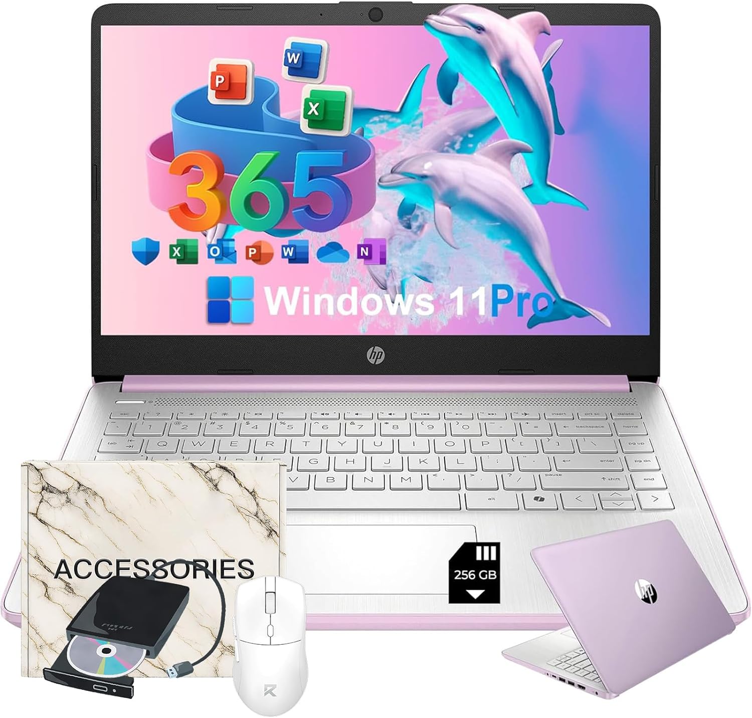 HP Flagship Everyday Laptop Computer - Win 11 Pro & AI-Powered 1-Y Office 365 • Intel Quad-Core(up to 3.4GHz) • Long Battery • 16G RAM • 128G UFS • w/256G SD Card & DVD Drive for Student & Business